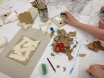 Heute hatten wir im Kunstmuseum richtig viel Zeit. Zuerst haben wir uns die aktuelle Ausstellung „Eduard Micus – Retrospective“ angesehen und nach einem Picknick im Kunstgarten… konnten wir das Gesehene mit ähnlichen Materialien (Stoffen, Fäden, Zeitschriftenauszügen und Pappen) nachgestalten. Die Ergebnisse können sich sehen lassen!