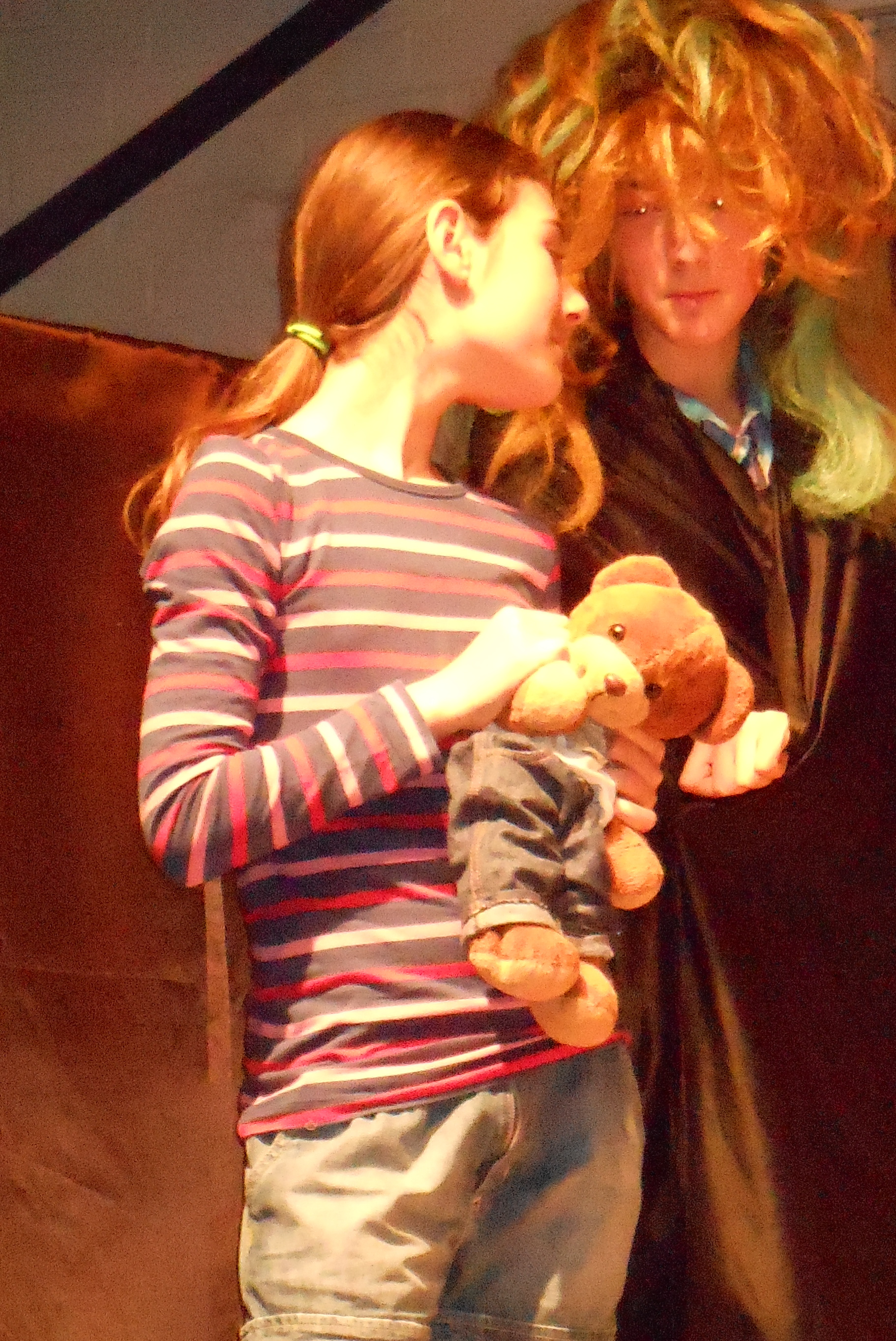 Als Darstellerinnen zeigten sich Schülerinnen und Schüler des 6ten Jahrgangs. Überzeugend trat Annika als strenge, aber auch nachdenkliche Mutter in Aktion. Charlotte B. überzeugte als ihre spitzbübische Tochter, aber auch als gleichgültiger Ahmet und gemeiner Mitschüler. „Wo ist nur mein Teddy?“, klagte Linda herzzerreißend und spielte auch den Kumpanen des gemeinen Mitschülers, der herzlos eine Mitschülerin bedrängte. Madeleine gab sich als Professor Dr. Heidi im Stück hochnäsig, spielte aber auch gleichzeitig eine zutiefst hilflose Mitschülerin. Alina, Jaqueline, Selenay, Danielle und Charlotte G. wechselten in ihren Rollen von spielenden ausgelassenen Kindern zu sehr nachdenklichen Personen und wurden auch richtig gemein.