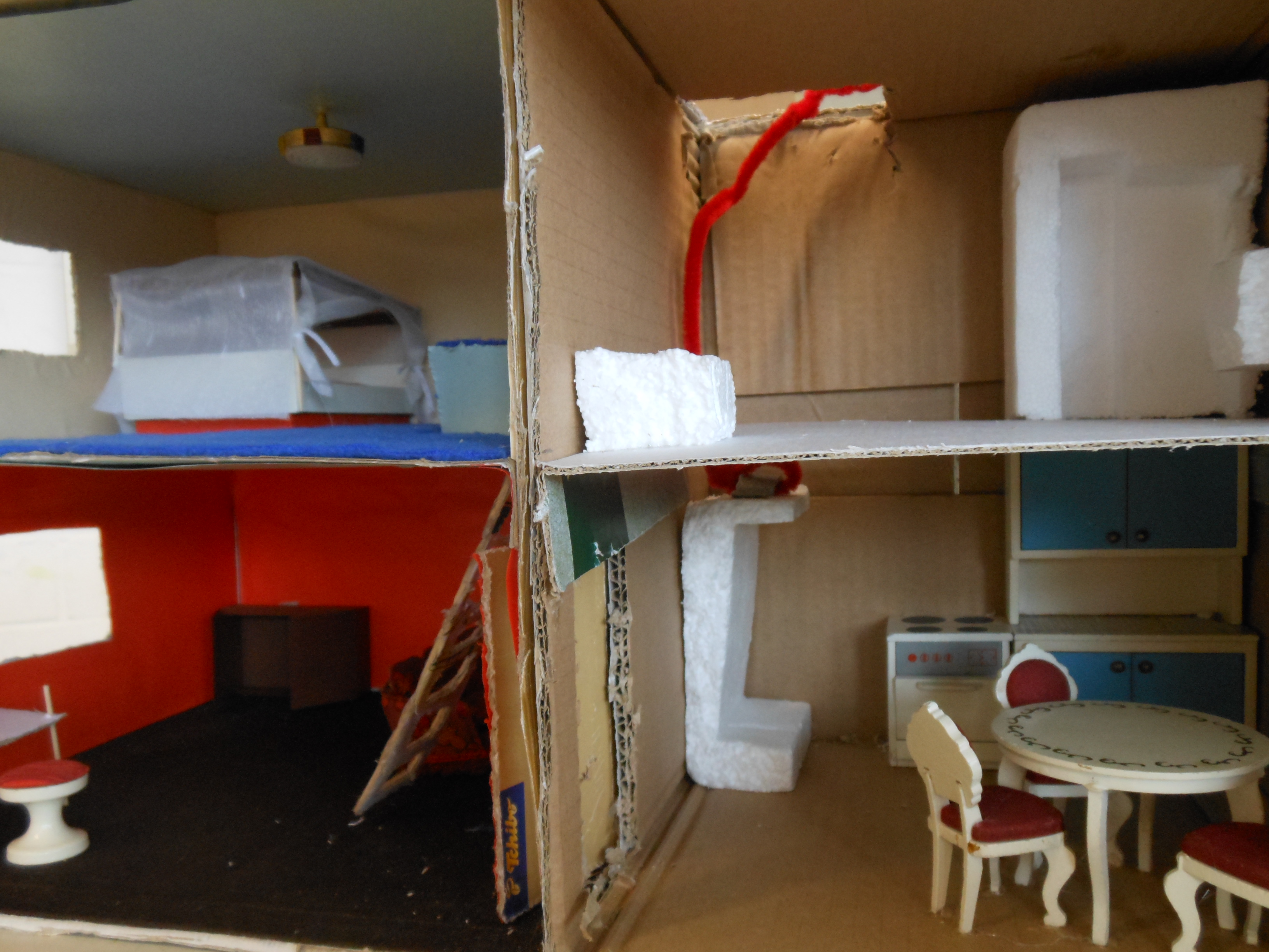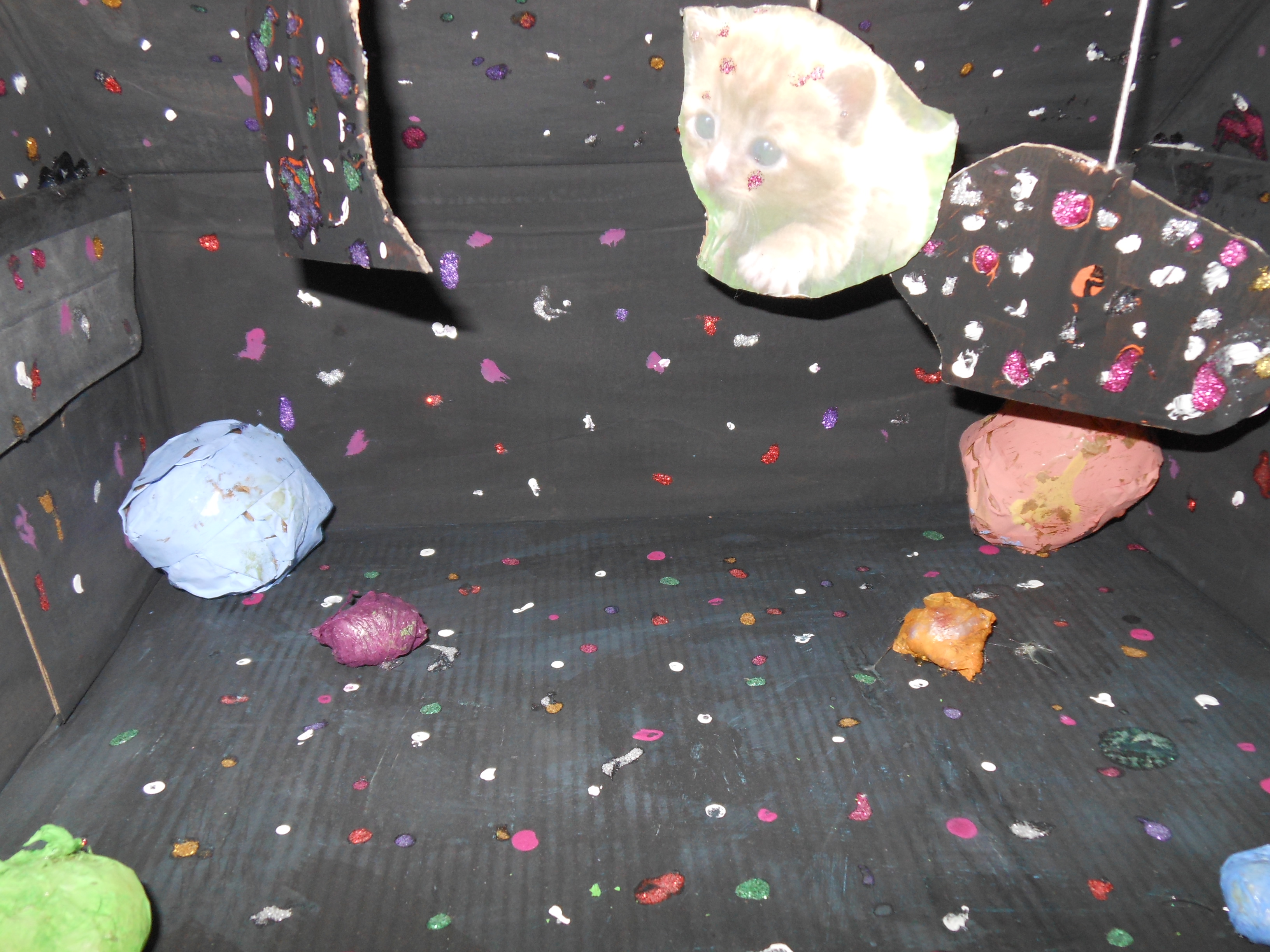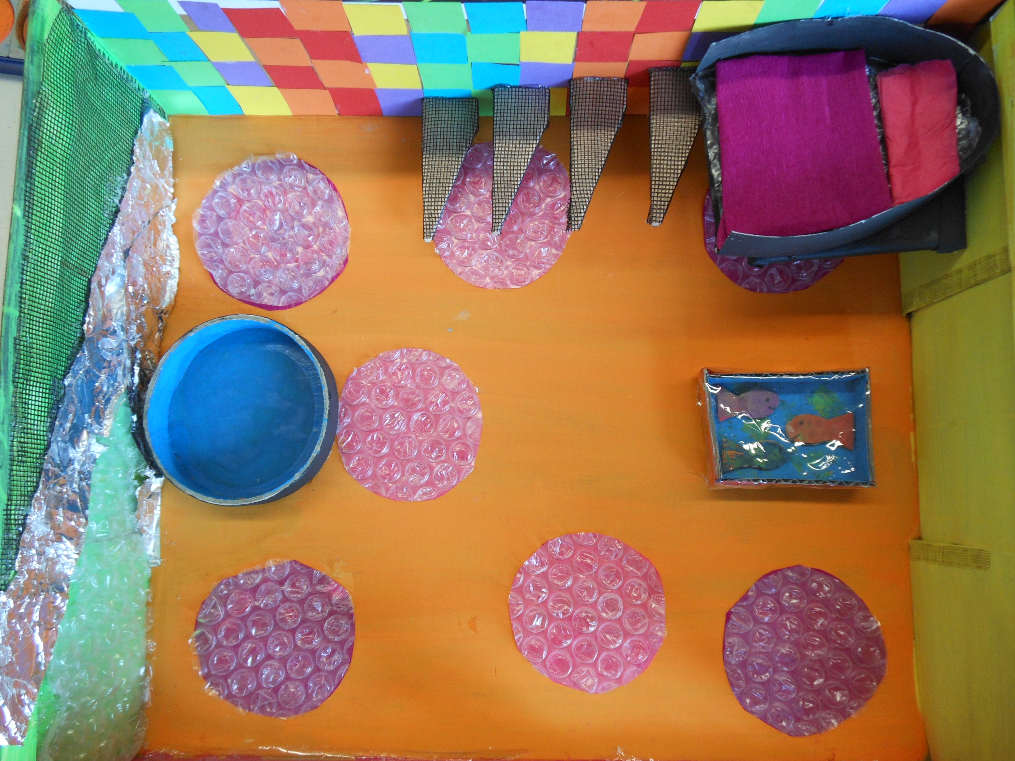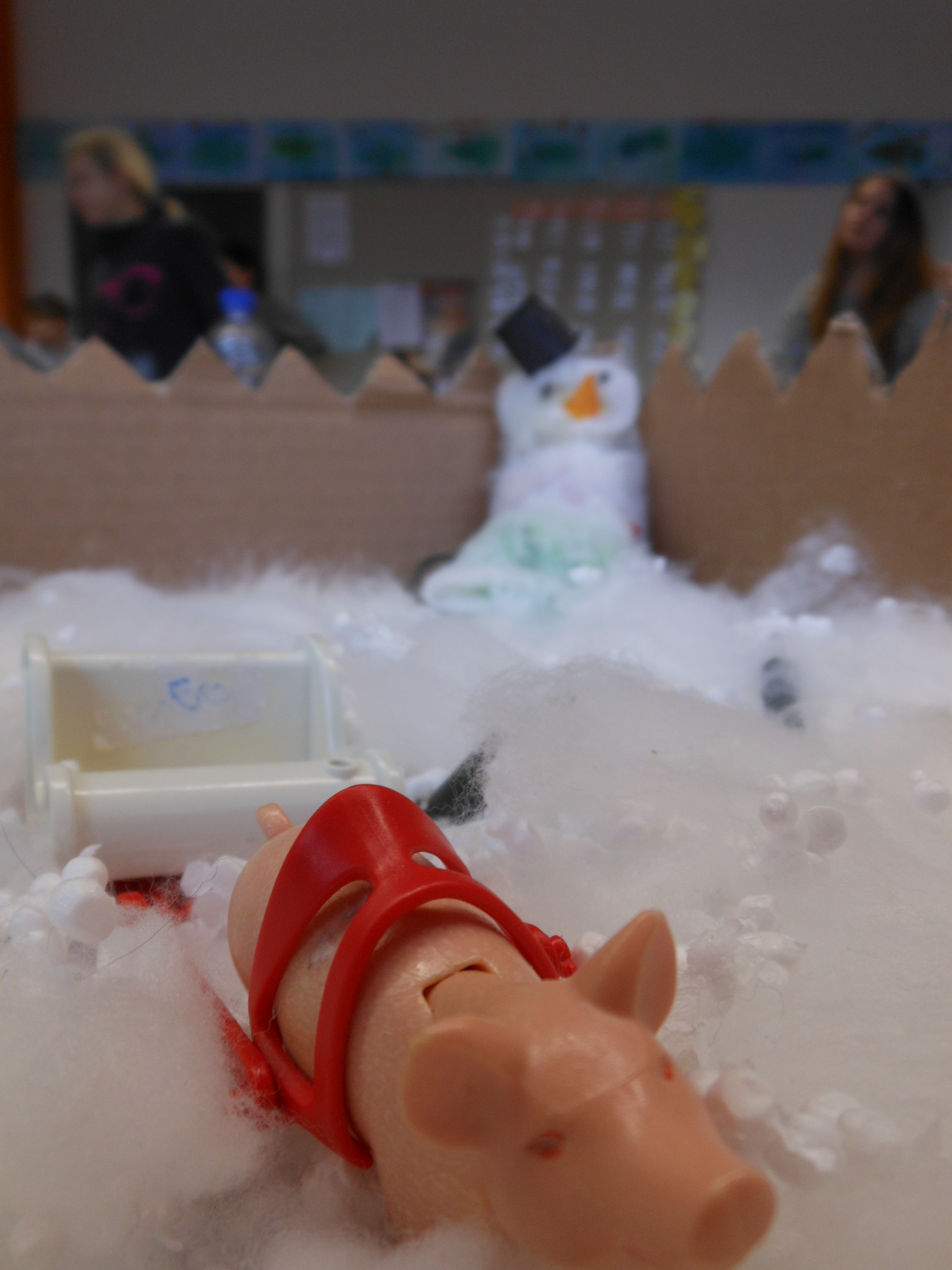 Ein Krokodil taucht in blau gefärbt aus einer mit gleicher Farbe gefüllten Tonne auf. Eine eigens im Raum gespannte Folie ist von Farbflecken übersät. Ein Mann steht an der Seite und drückt einen Knopf. Das wie im Theater beleuchtete Szenario in einem Diorama „Krokodilfärberei“ des Künstlers Peter Basseler war Ausgangspunkt für die gestalterische Arbeit der Schülerinnen und Schüler des 7ten Jahrgangs. Die „Dioramen sind moderne Märchen aus einer zwischen Realität und Fiktion schwebenden Welt, jenseits aller Orte, Zeiten und Normen.“ Fiktionsräume zu planen und umzusetzen, damit beschäftigten sich die Schüler und Schülerinnen der Klasse 7.3. und 7.4.