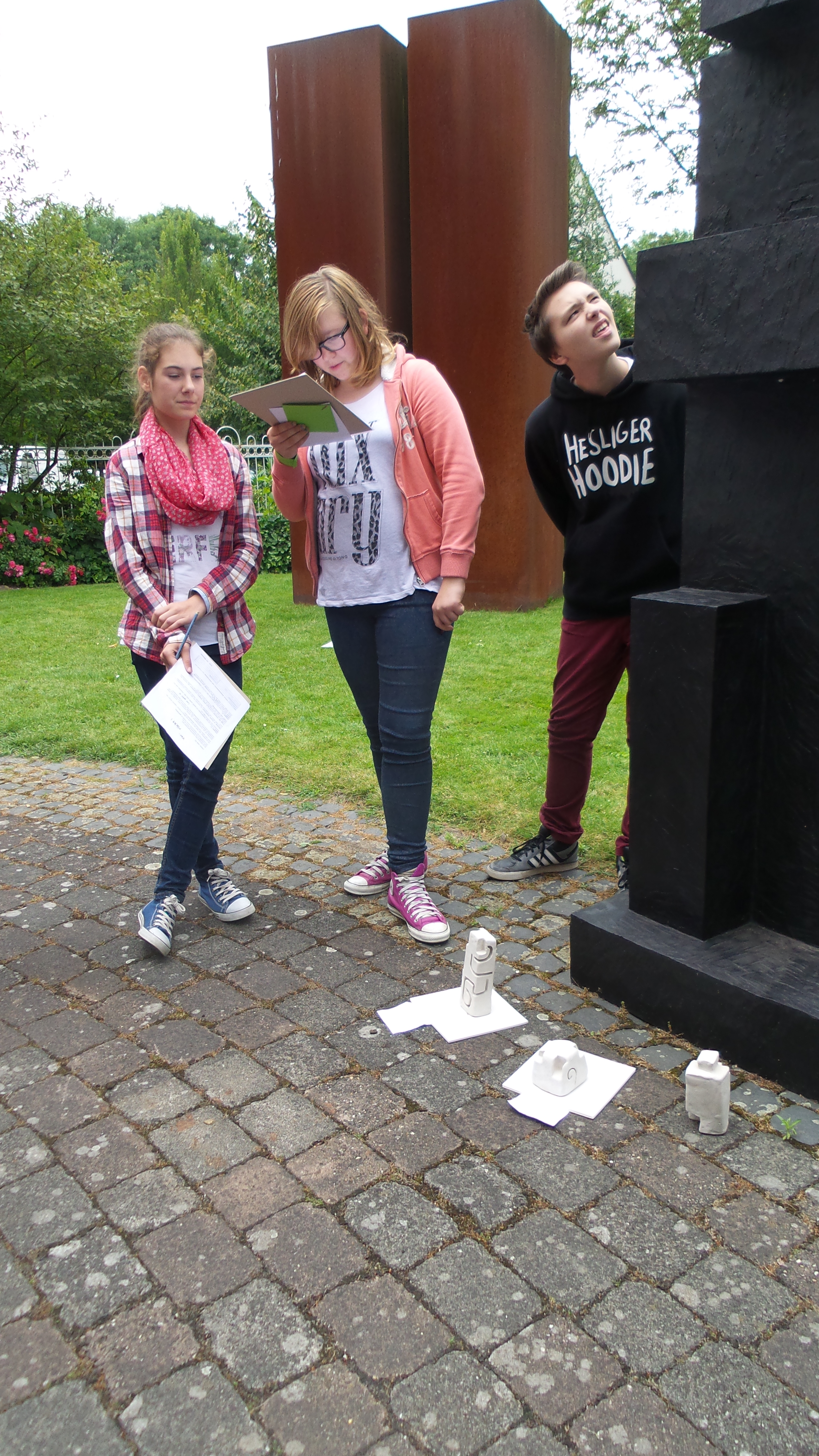 Inspiriert von den Originalen vor Ort arbeiteten sie im Kunstunterricht an eigenen Skulpturen und veränderten bewusst Form, Material, Komposition und Oberflächenstruktur.