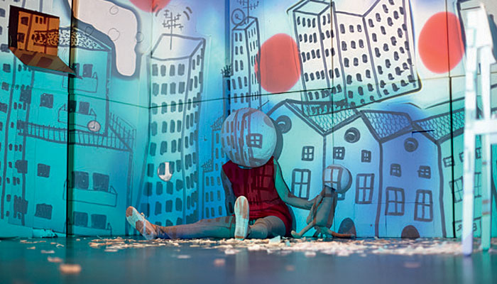 „SIE ist allein in ihrer Wohnung. Sie – das ist eine fantastische Figur mit einem riesigen Kopf. Sie entdeckt für sich, wie es ist, einsam zu sein. Allein Spiele zu spielen, bei denen sie immer gewinnt. Allein Geburtstag zu feiern und den ganzen Kuchen für sich zu haben. Allein eine Fantasiewelt zu bauen und sich darin zu verlieren. Ihr Kontakt mit der Außenwelt sind Briefe, in denen es vor allem um eines geht: Wer bin ich und wer sind die Anderen? Ist es traurig, alleine zu sein? Und wie fühlt es sich an: das Gefühl von Einsamkeit?“ (halbstark-muenster.de, 2014)