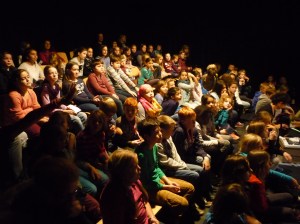 … und auch ganz praktisch auf unserer Bühne im Forum, professionell unterstütz von einer Theaterpädagogin des Festival-Teams.
