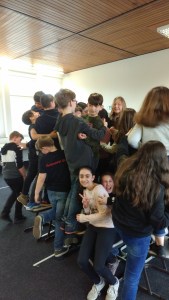 Was passiert, wenn die Stuhlfläche immer kleiner wird? Passen wir gemeinsam noch drauf? Erfahrungsorientiert galt es am Projekttag des Präventionsbausteins „Smiley und Frusty “ der Fritz-Winter-Gesamtschule dieser Frage nach zu kommen. Gemeinsamkeit macht stark, dieses Credo zogen die Kinder der Kunstklasse 5.1..