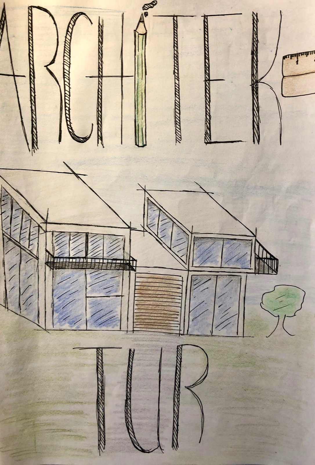 Die Schule bekommt einen Neubau. Und wenn die Bagger schon anrücken, sollte es doch auch zu realisieren sein, ein weiteres Gebäude zu bauen. Dieses Mal weit weg von Lehrern und Kindern – ein Aufenthaltsraum für die Oberstufe. Zwei 11er Kurse haben sich Gedanken darüber gemacht, wie dieses Gebäude aussehen könnte, welchen Zweck es hätte und ob und inwiefern es einen Bezug zur aktuellen Architektur zeigen würde.
