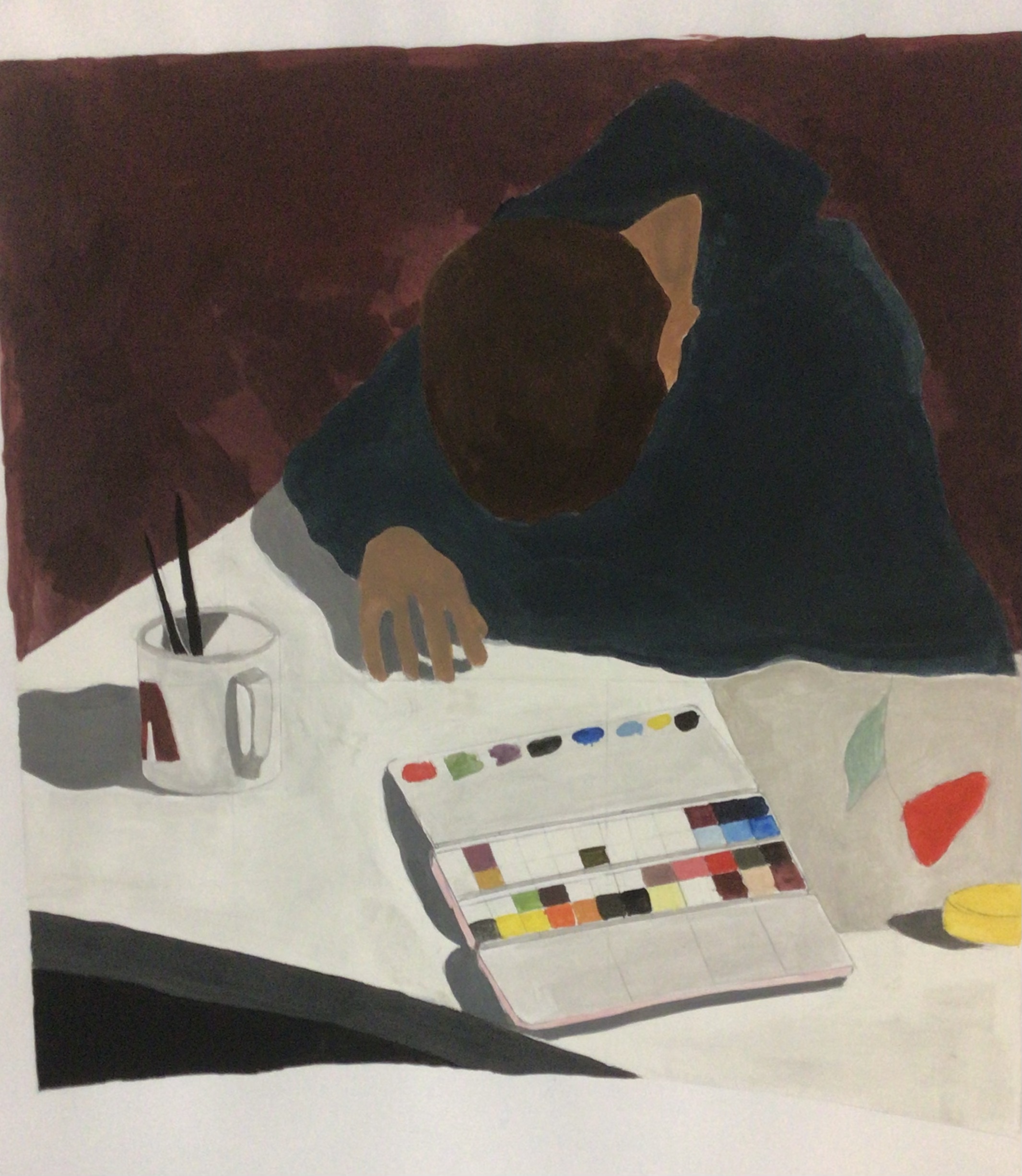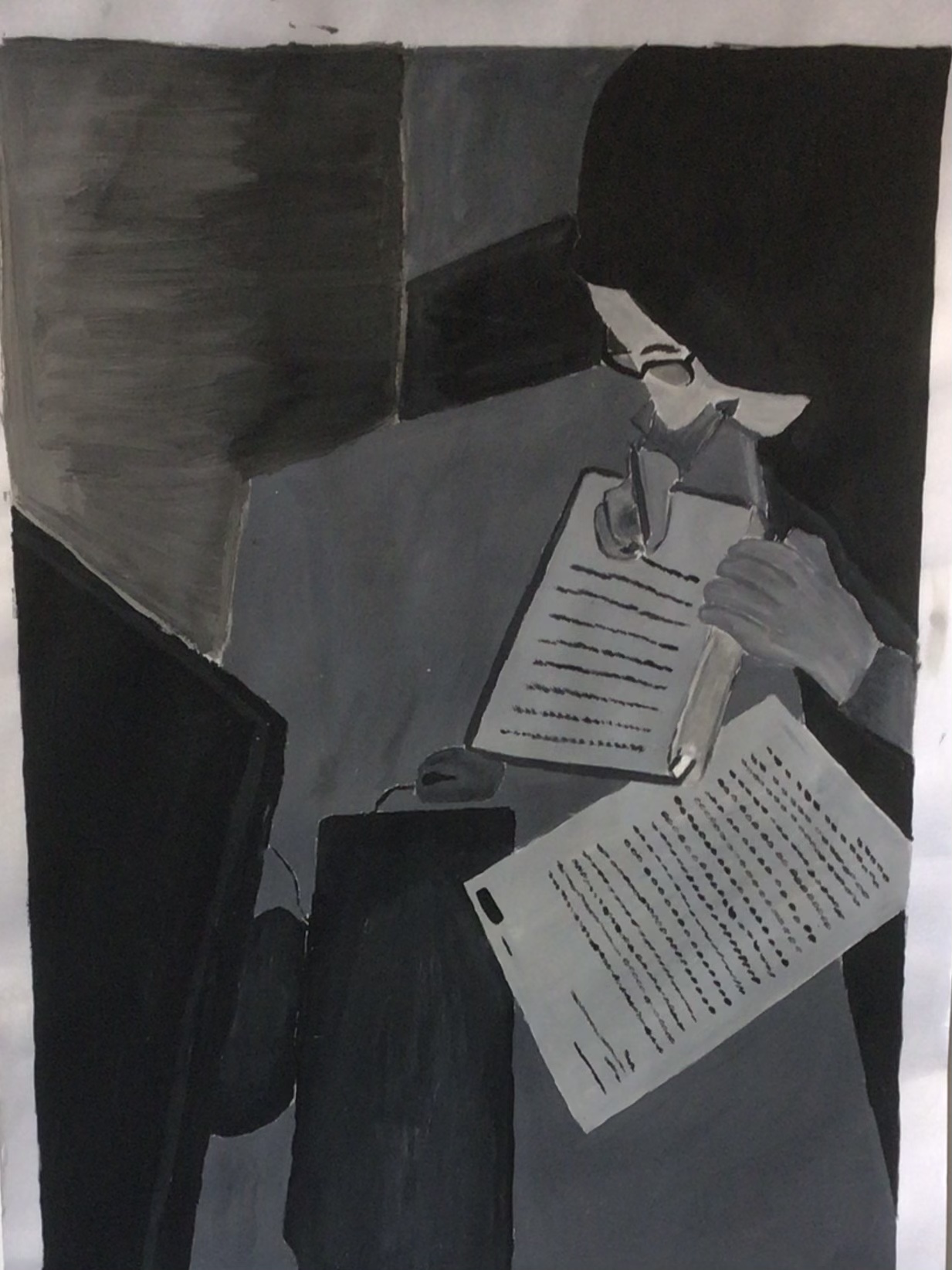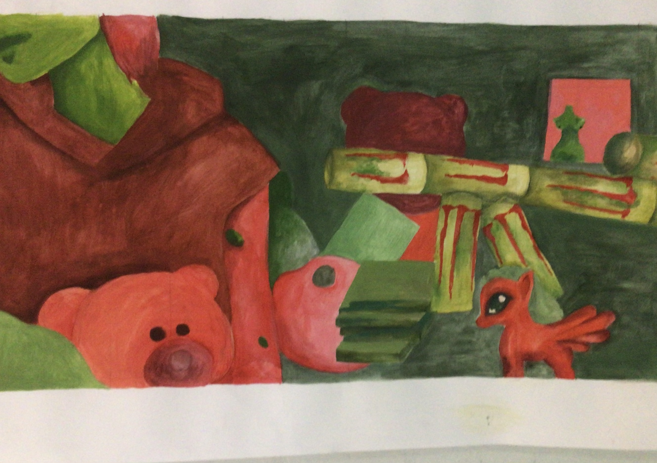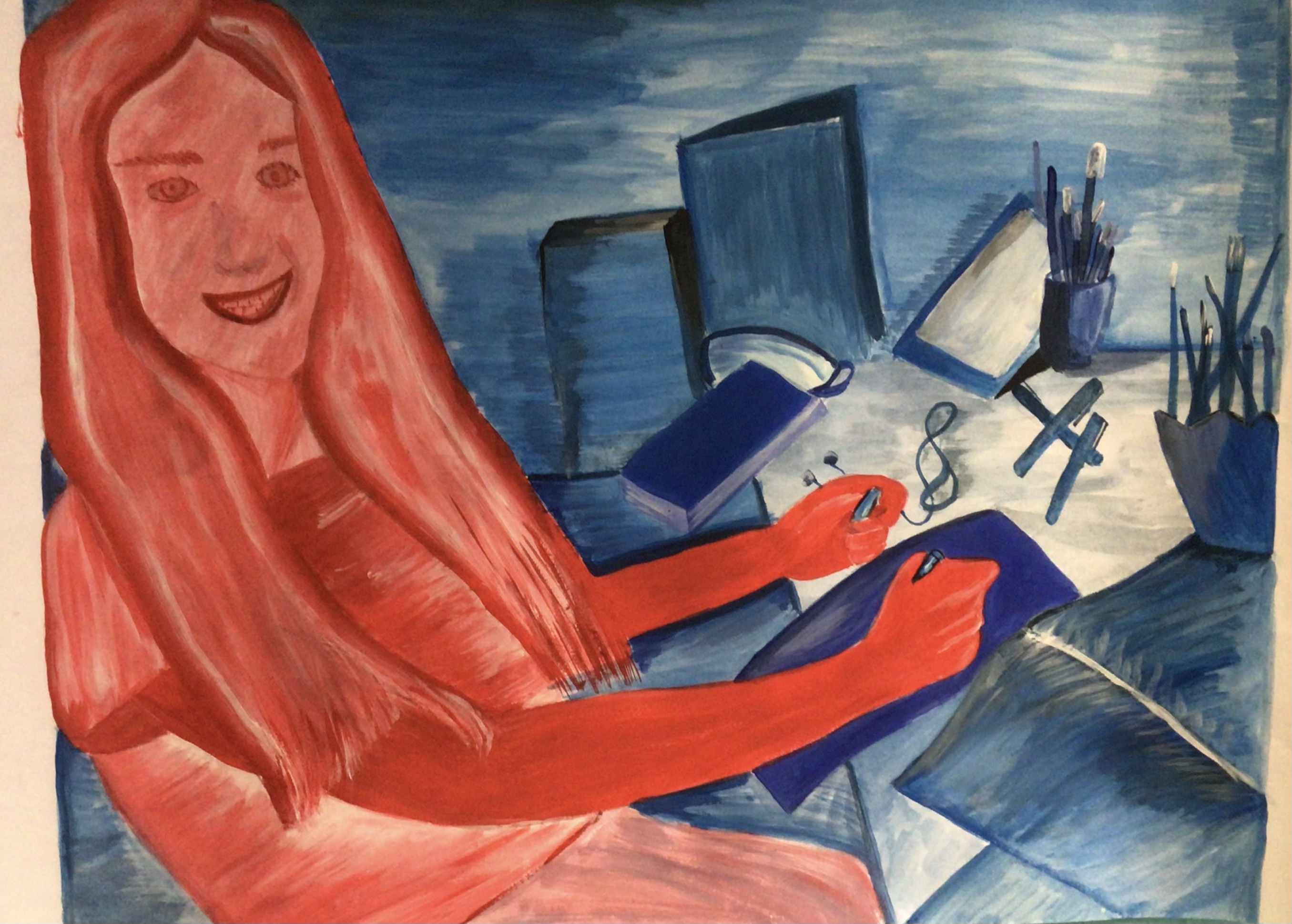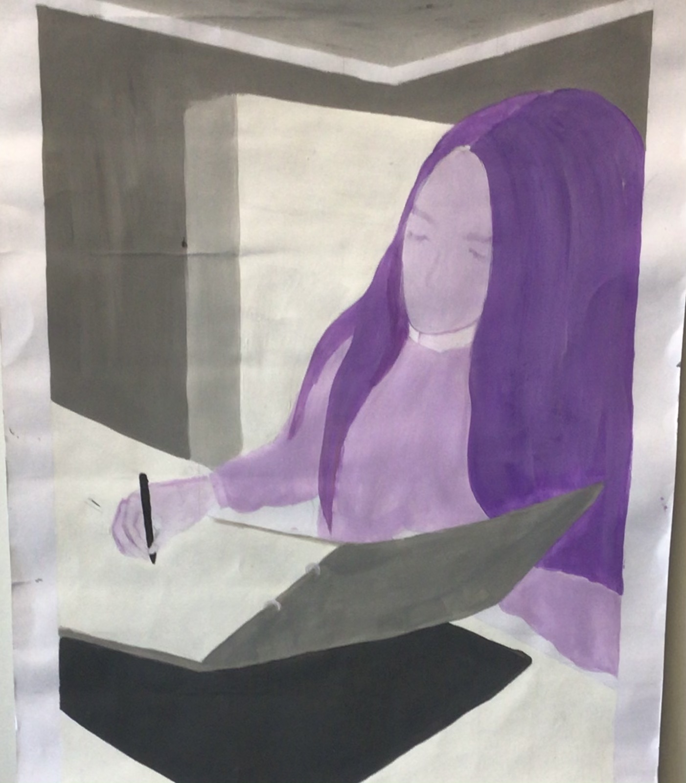 Dazu startete die künstlerische Aufgabe der Kunstklasse des neunten Jahrgangs damit, ein Foto zu erstellen. Auf dem Foto sollte der Schüler bzw. die Schülerin, der bzw. die das Foto erstellte, der eigene Arbeitsplatz und relevante Gegenstände, die während der Ausgangssperre eine wichtige Bedeutung hatten, zu erkennen sein. Des Weiteren sollte das Foto das Arbeiten während dieser Zeit widerspiegeln. Nach den Sommerferien wurde dann an die Fotos angeknüpft, indem sie bearbeitet wurden, um sie zu vereinfachen. Nun folgten der künstlerische Teil und der Grund, warum die Fotos bearbeitet wurden. Die Fotos sollten originalgetreu und maßstabsgerecht mit Acrylfarbe auf Karton übertragen werden. Zum originalgetreuen und maßstabsgerechten Übertragen diente das neu erlernte Rasterverfahren, das bereits von alten Meistern verwendet wurde.
