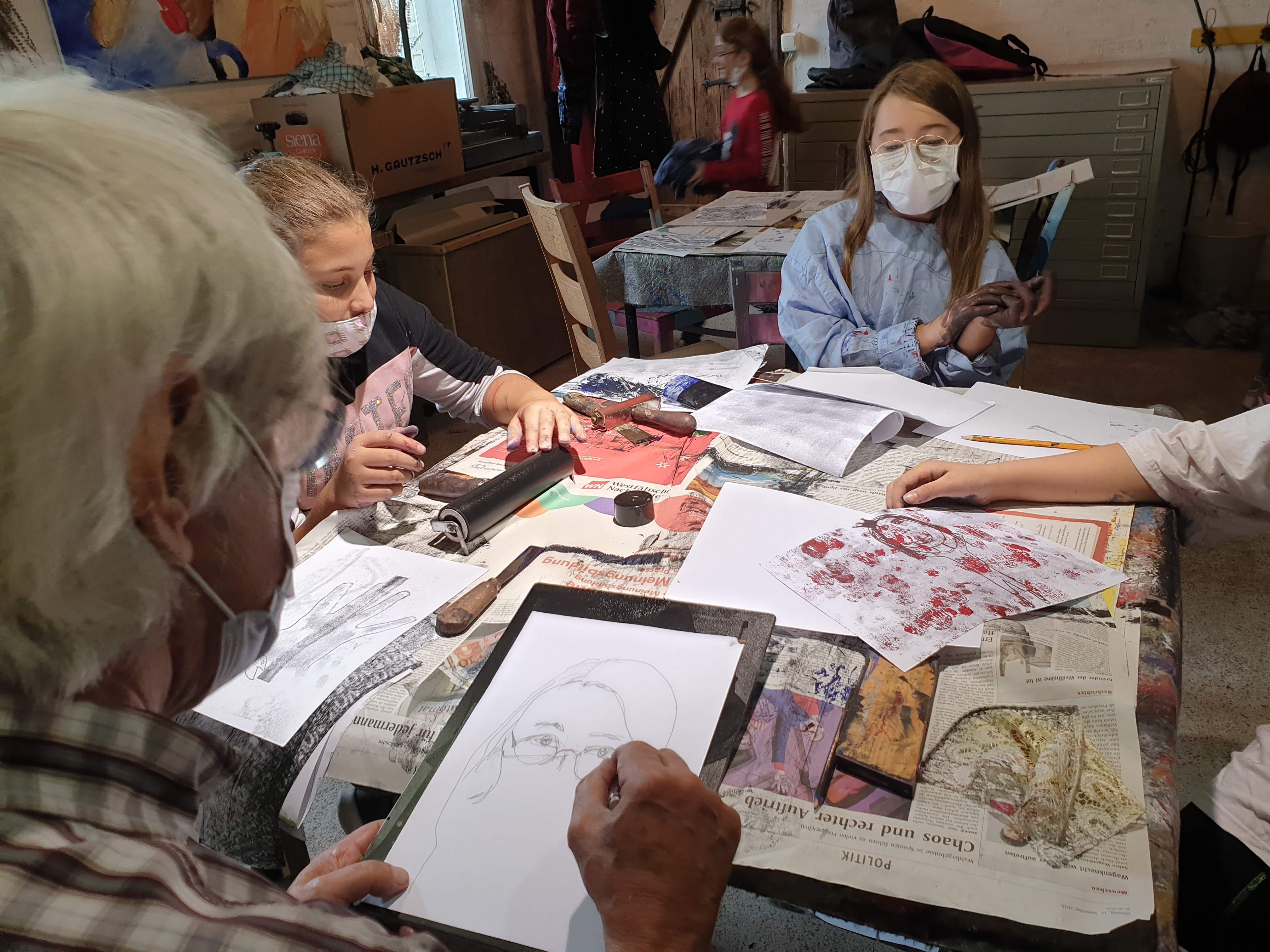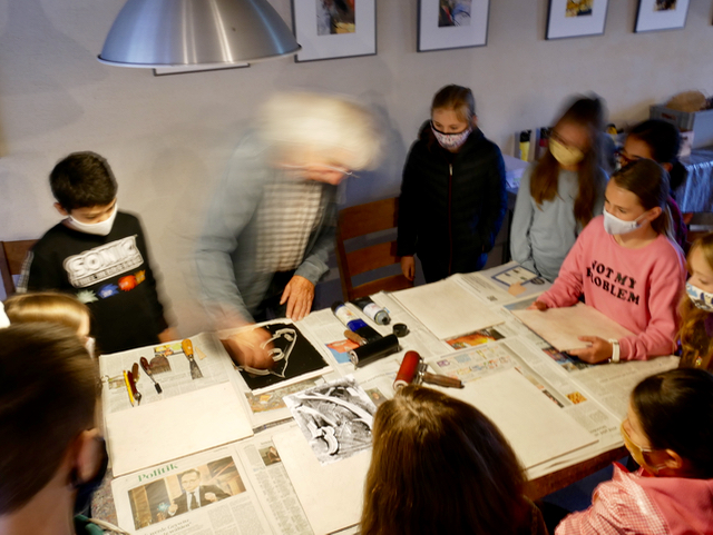 Unser erster Wandertag stand ganz im Zeichen der Kunst. Zusammen mit Künstler Jürgen Krass haben wir gedruckt wie die Wilden. Hier ein paar Impressionen von unserem ersten Kunstworkshop:
